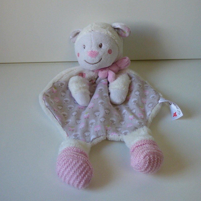 quantité de Doudou Mouton Plat Blanc Rose et Beige Nicotoy