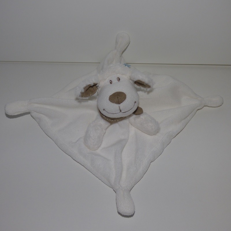 Doudou Mouton Plat Carré Blanc Bandana Marron Tex