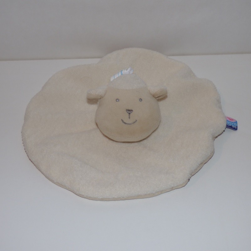 Doudou Mouton Plat Rond Beige et Blanc Cassé Sucre d Orge