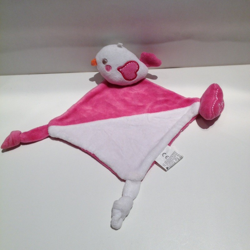 Doudou Oiseau Plat Mouchoir Rose et Blanc Siplec Mots d Enfants