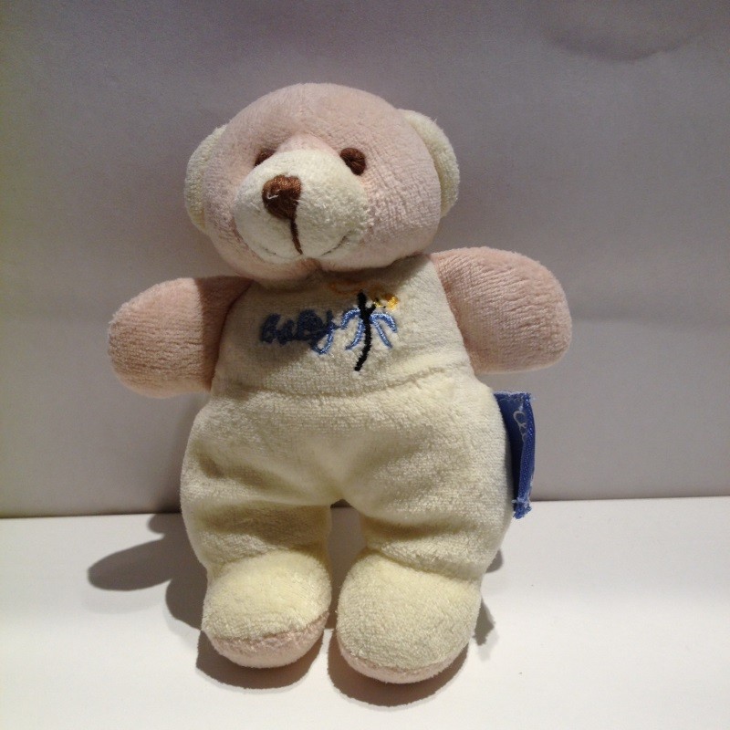 Doudou Lapin Plat Carré Blanc et Rose Teenie Star