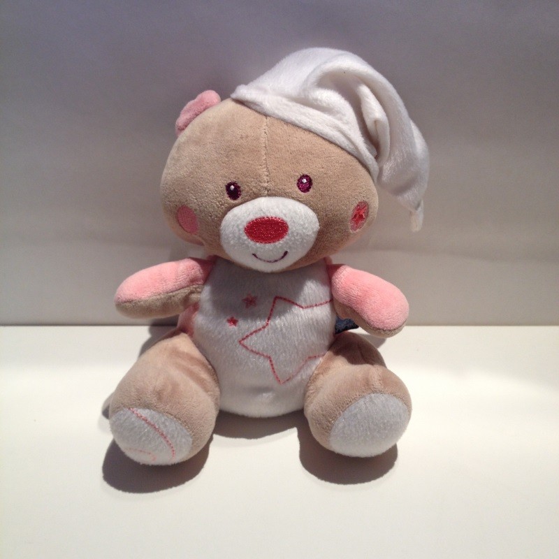 Doudou Ours Beige et Blanc Etoile Rose Sucre d Orge