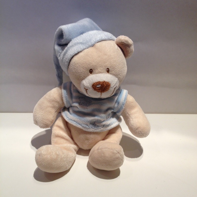 Doudou Ours Blanc Tee Shirt Bleu Broderie Lune et Etoiles Nicotoy