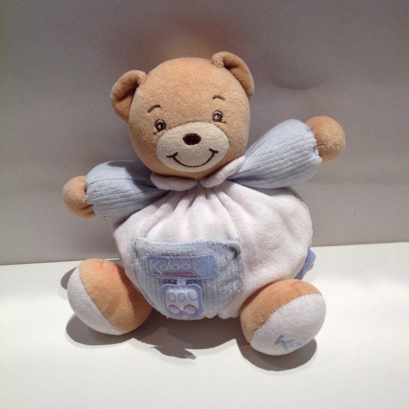 Doudou Ours Boule Blanc et Bleu Bus Kaloo