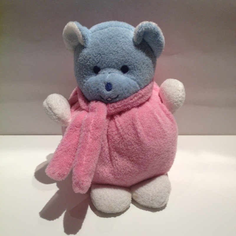 Doudou Ours Boule Rose, Blanc et Bleu Musti Mustela