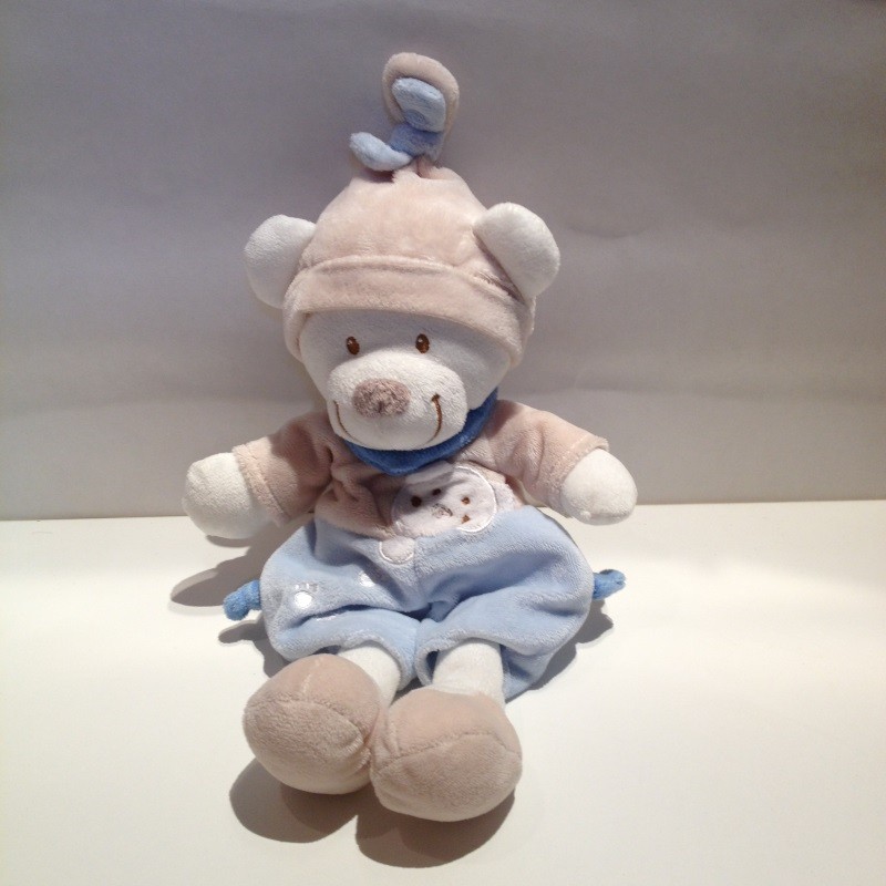 Doudou Ours Combinaison Beige et Bleue Nicotoy