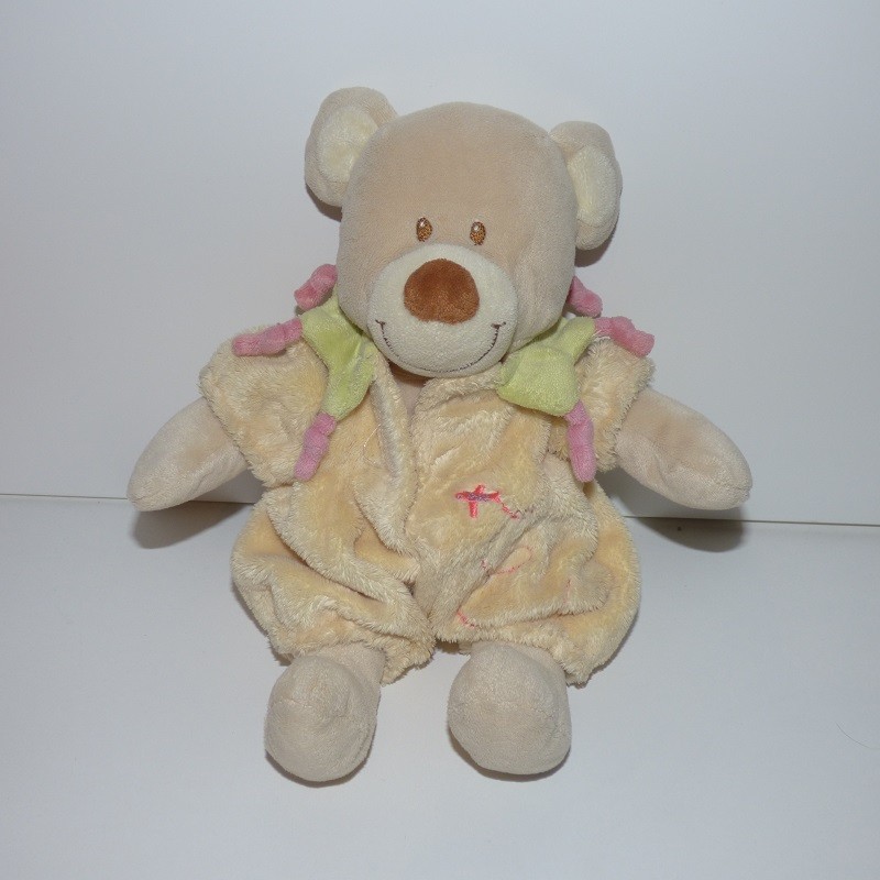 Doudou Ours Combinaison Jaune Broderie Avion Tex