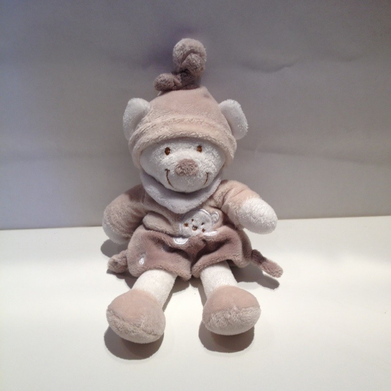 quantité de Doudou Ours Gris et Blanc Bonnet 18cms Nicotoy