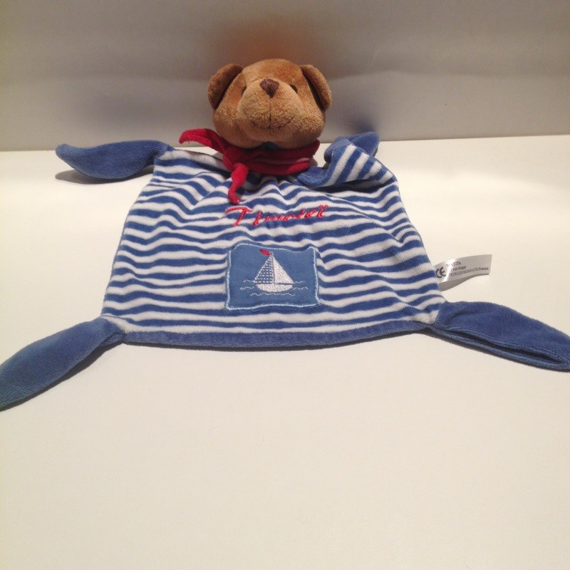 Doudou Ours Marin Plat Rayé Bleu Maxita