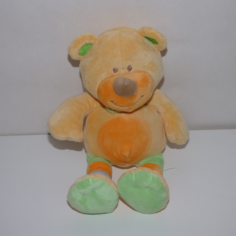 Doudou Ours Orange et Vert Bengy