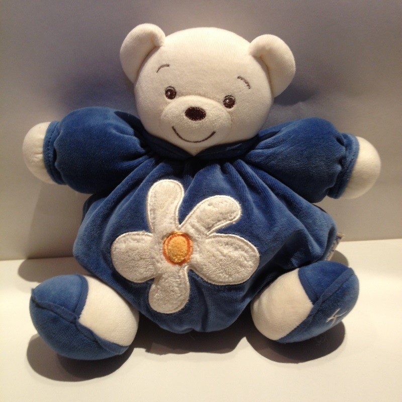 Doudou Ours Patapouf Bleu Fleur Blanche Kaloo