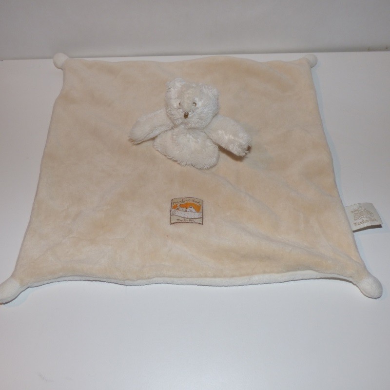 Doudou Ours Plat Beige et Blanc Basile et Lola Moulin Roty