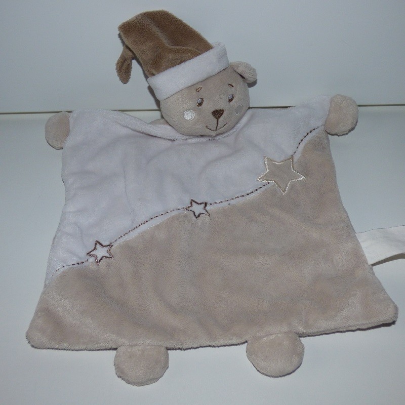 Doudou Ours Plat Beige et Blanc Etoiles Kimbaloo