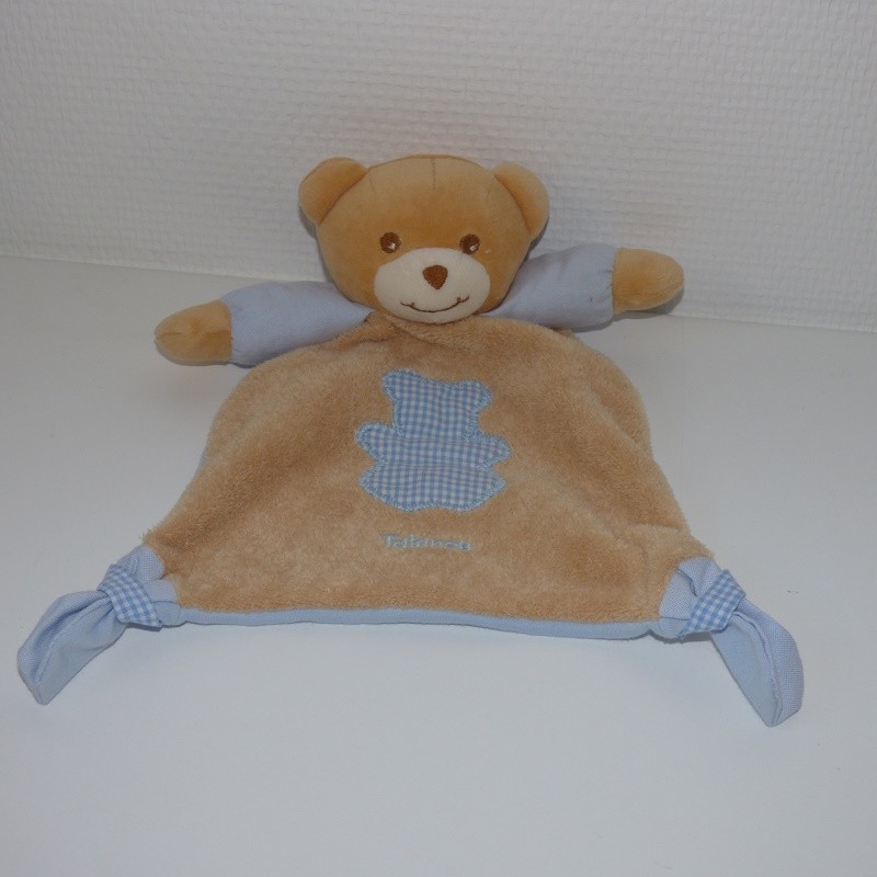 Doudou Ours Plat Beige et Bleu Takinou