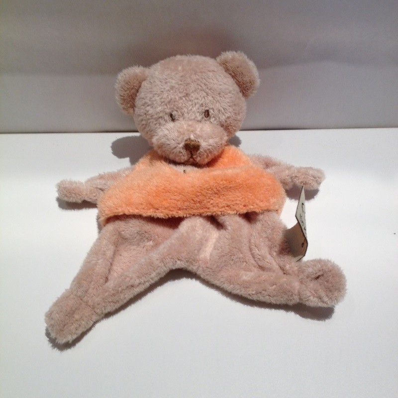 Doudou Ours Plat Beige Tee Shirt Orange Coeur Nicotoy