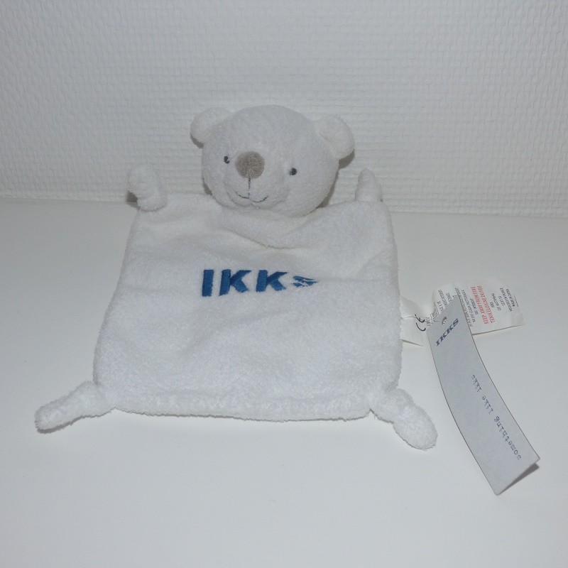 Doudou Ours Plat Blanc et Bleu IKKS