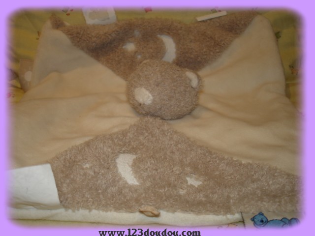 Doudou Ours Plat Blanc et Gris Lune/etoiles Noukies