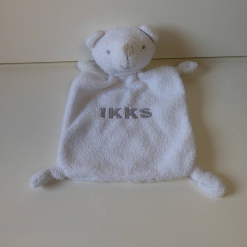 Doudou Ours Plat Blancet Gris IKKS