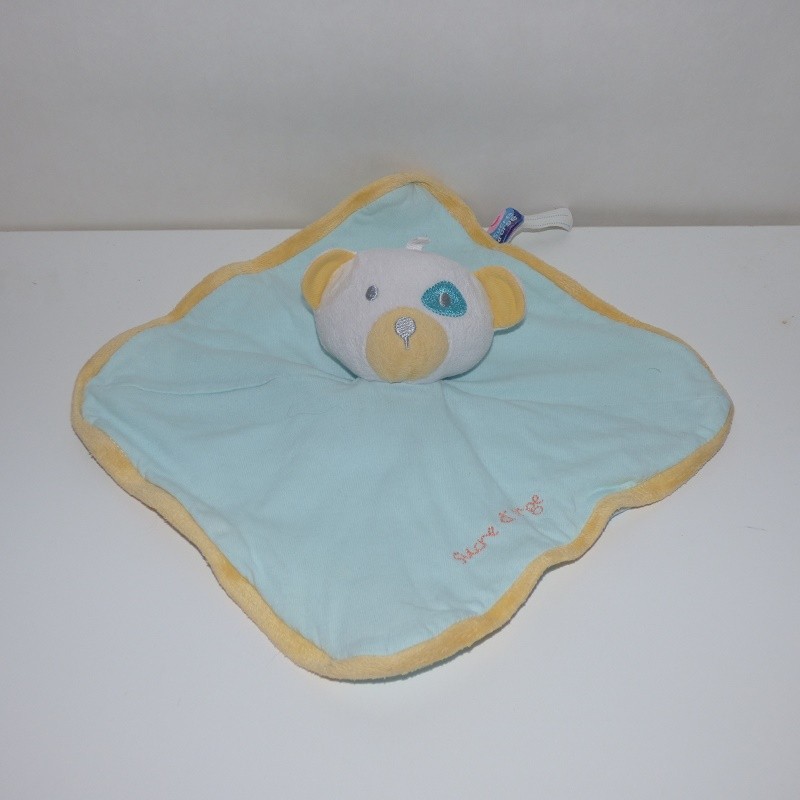 Doudou Ours Plat Bleu et Jaune Cocard Sucre d Orge