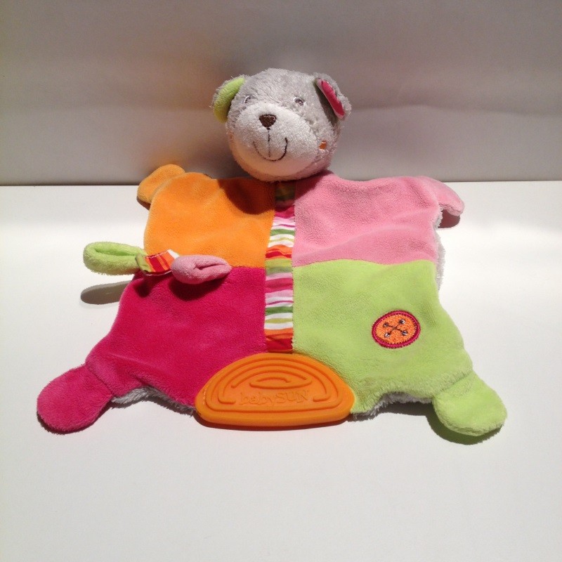 Doudou Ours Plat Carré 4 Couleurs Babysun