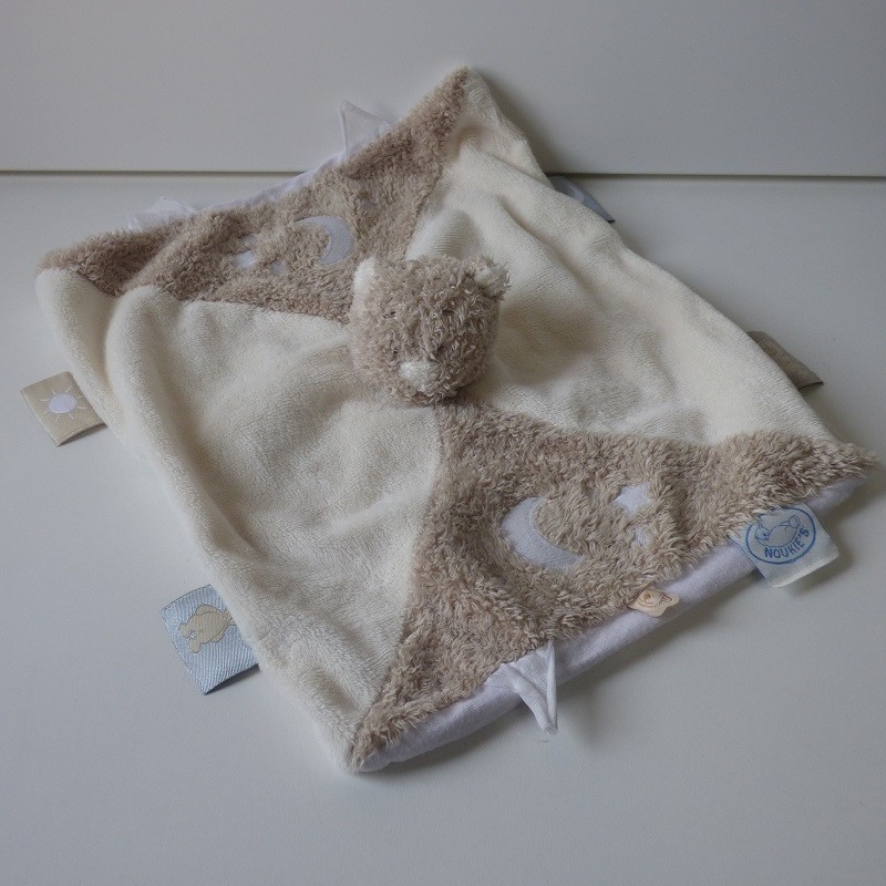 Doudou Ours Plat Carré Beige et Ecru Lune Noukie s