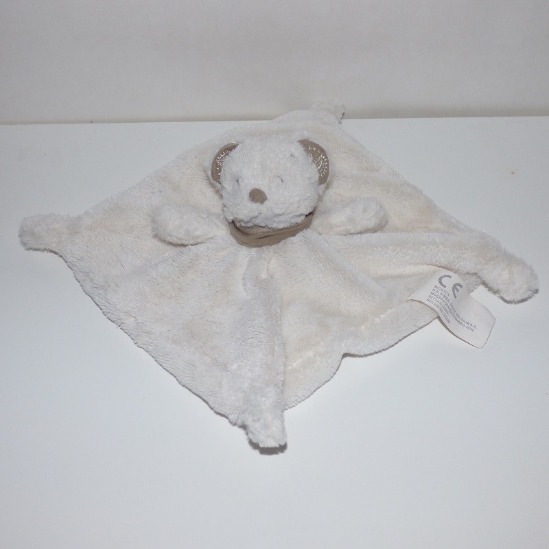 Doudou Ours Plat Carré Blanc Bandana Marron Nicotoy
