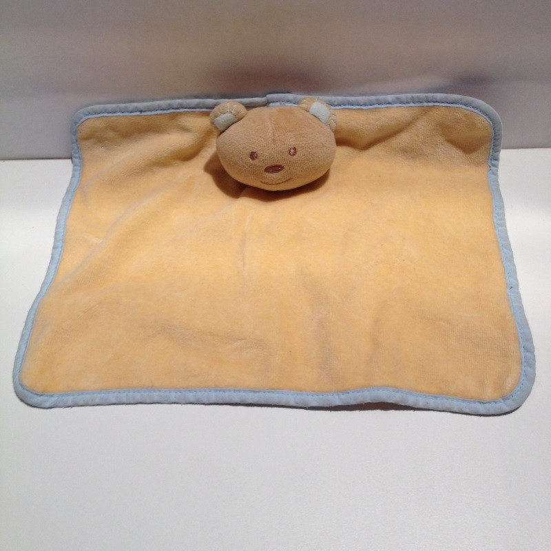 Doudou Ours Plat Carré Orange Bord Bleu Tex