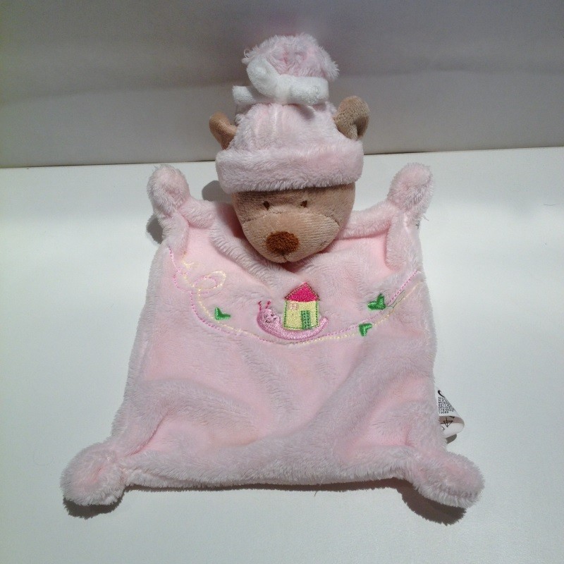 quantité de Doudou Ours Plat Carré Rose Escargot Nicotoy