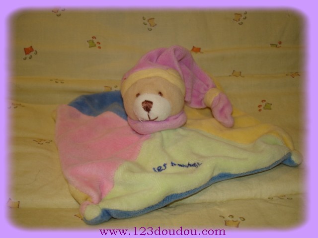 Doudou Ours Plat Carré Rose et Bleu Les Bonbons Babynat