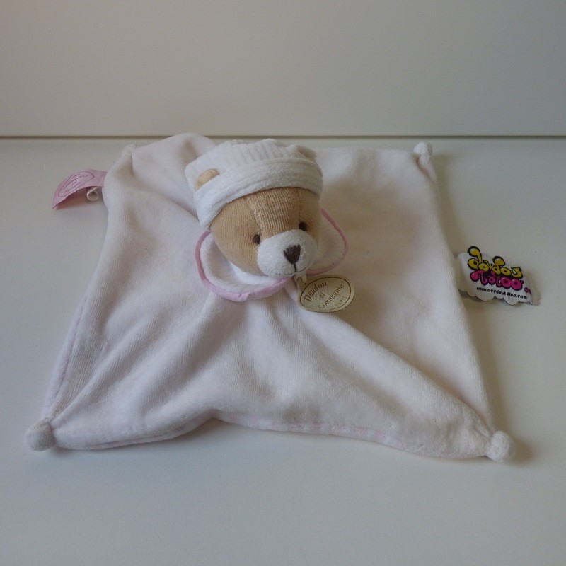 Doudou Ours Plat Collerette Rose Tatoo Doudou et Compagnie