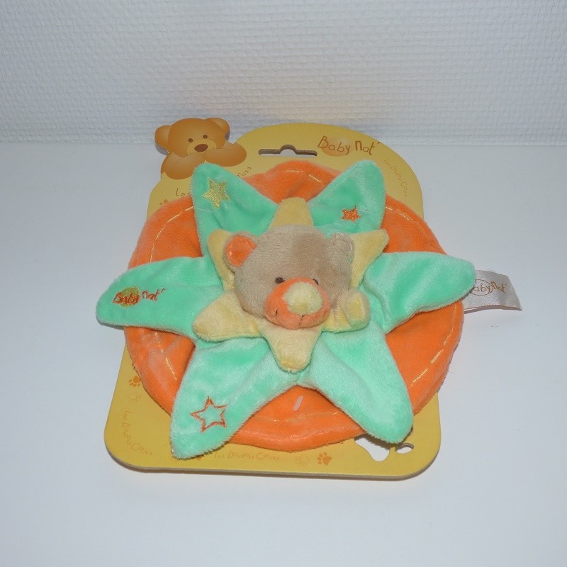 Doudou Ours Plat Etoile Vert et Orange Babynat