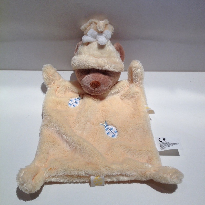 quantité de Doudou Ours Plat Jaune Broderie Coccinelles Nicotoy