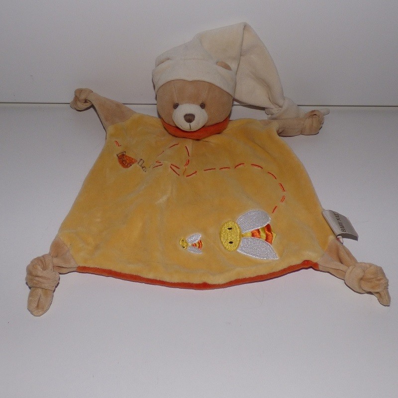 Doudou Ours Plat Jaune et Orange Abeille Babynat