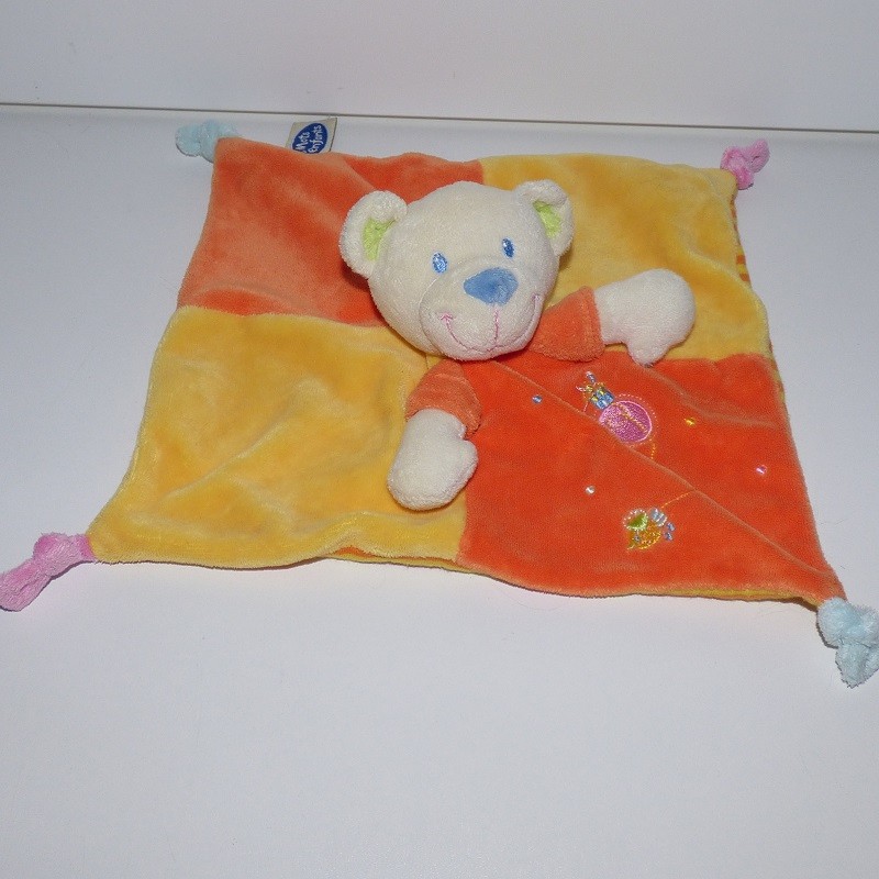 Doudou Ours Plat Orange et Jaune Mots d Enfants