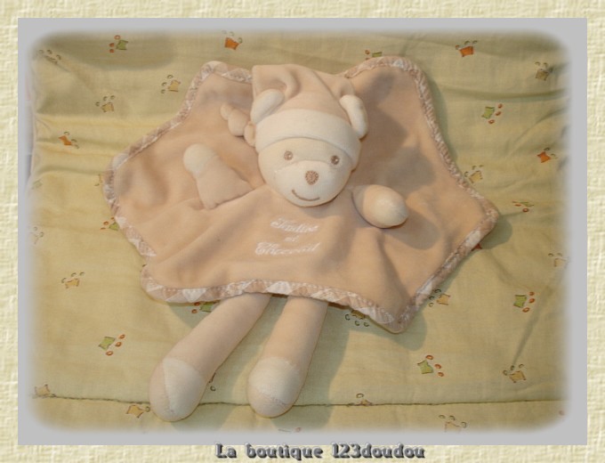 Doudou Ours Plat Rond Beige Tartine et ChocolatDoudou rond de 25 cmBlanc et beigeMatière velours