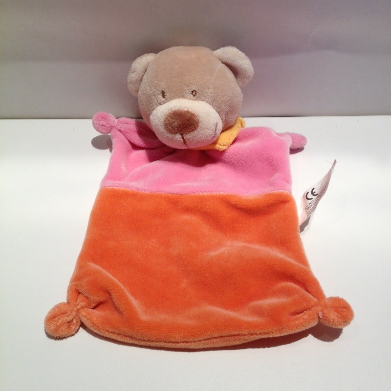 quantité de Doudou Ours Plat Rose et Orange Nicotoy