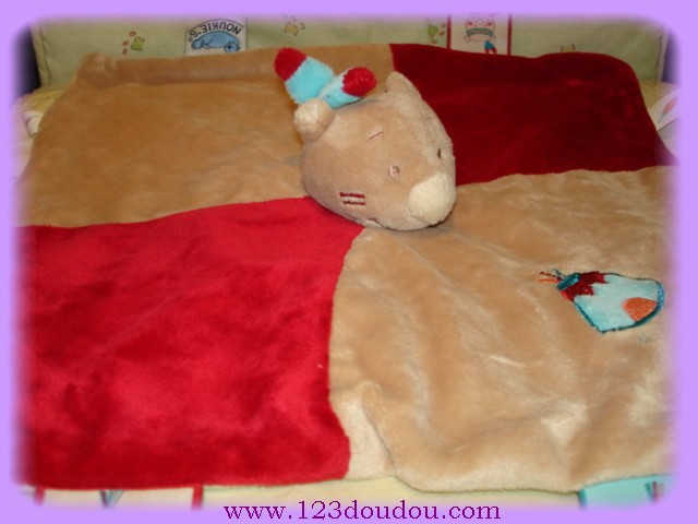 quantité de Doudou Ours Plat Rouge et Beige Pinto et Kaya Noukies