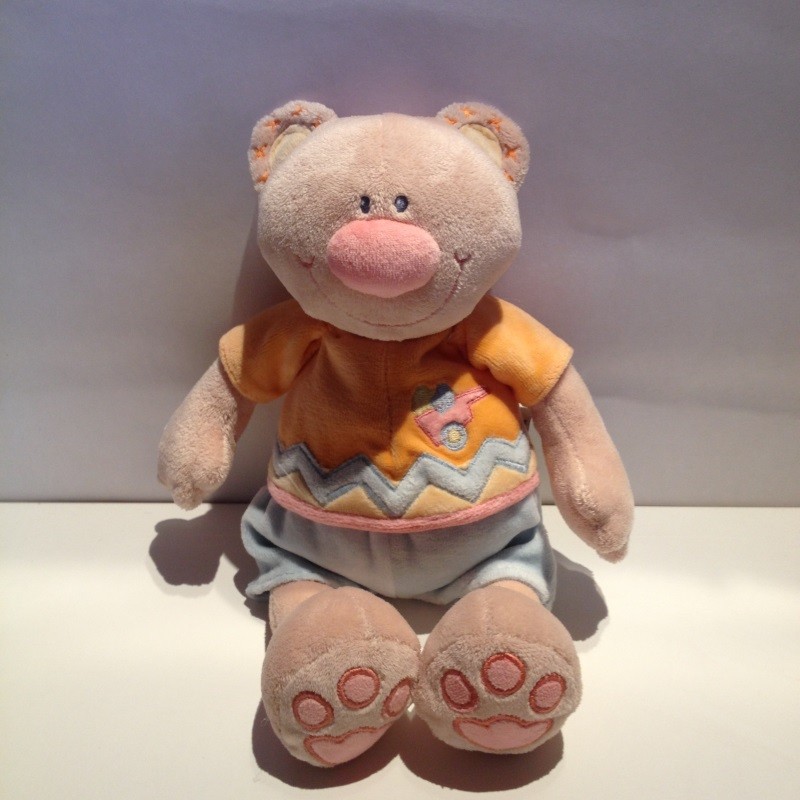 Doudou Ours Pol Biege et Orange Broderie Brouette Nattou