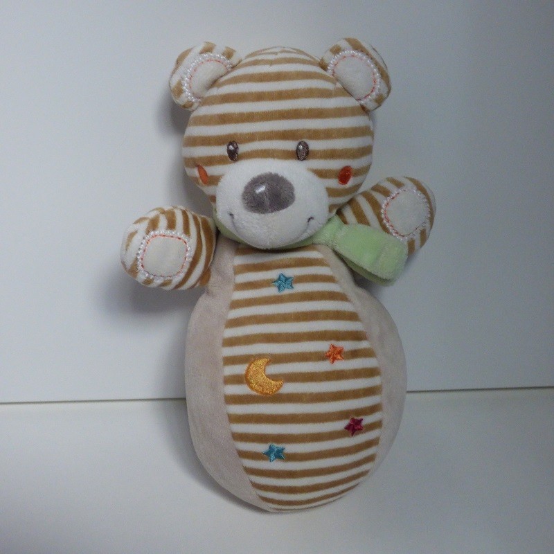 quantité de Doudou Ours Rayé Blanc et Beige Culbuto Nicotoy
