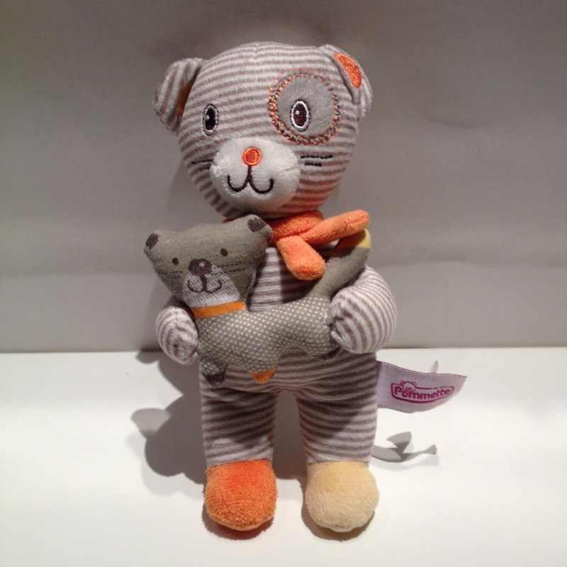 quantité de Doudou Ours Rayé Marron et Blanc Pommette