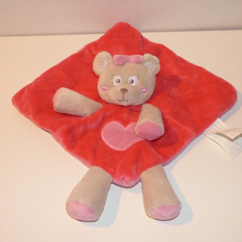 Doudou Ours Rose Plat Coeur Kimbaloo