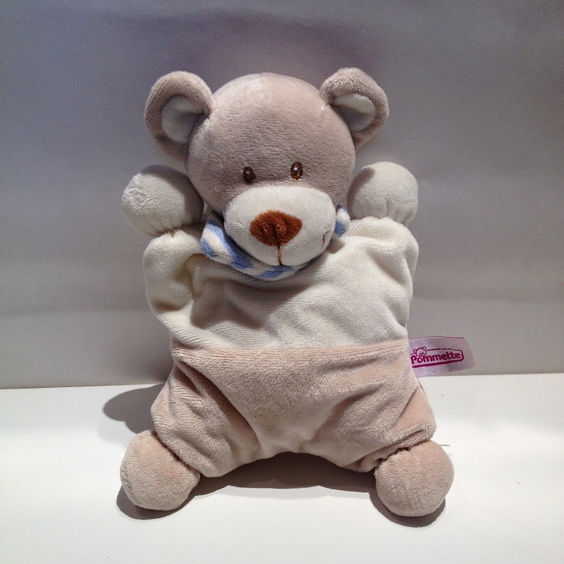 Doudou Ours Semi Plat Beige et Ecru Pommette