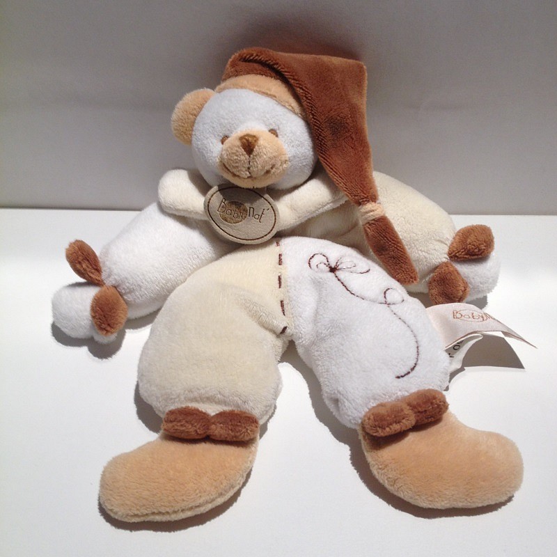 quantité de Doudou Ours Semi Plat Blanc Bonnet Marron Babynat