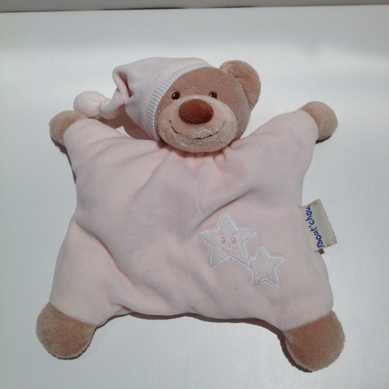 Doudou Ours Semi Plat Rose Broderie Etoiles Bout chou