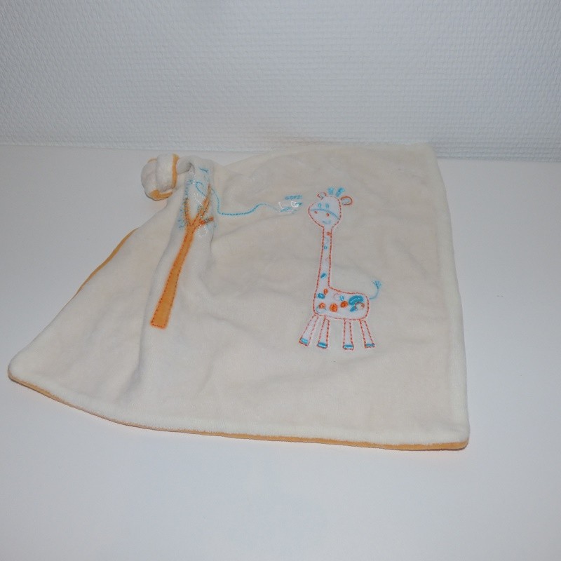 quantité de Doudou Plat Blanc et Orange Broderie Girafe