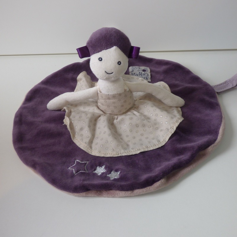 Doudou Plat Danseuse Aimé et Céleste Rond Mauve Moulin Roty