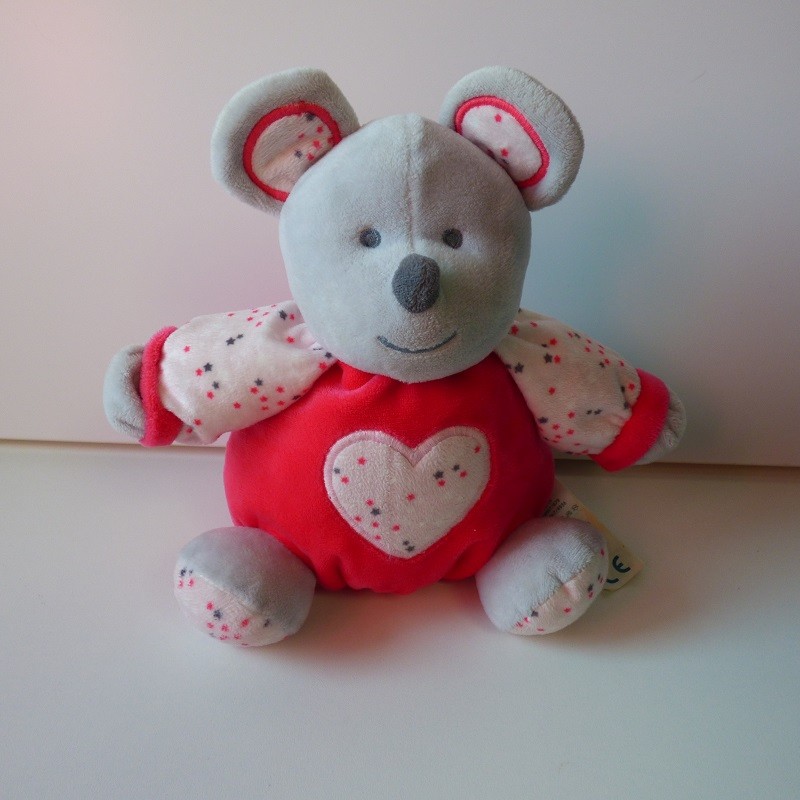 Doudou Souris Boule Rose et Grise Coeur Obaïbi Okaïdi