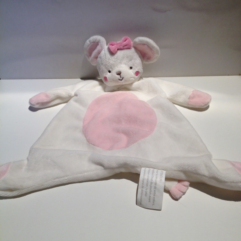 Doudou Souris Plate Blanche et Rose Kimbaloo