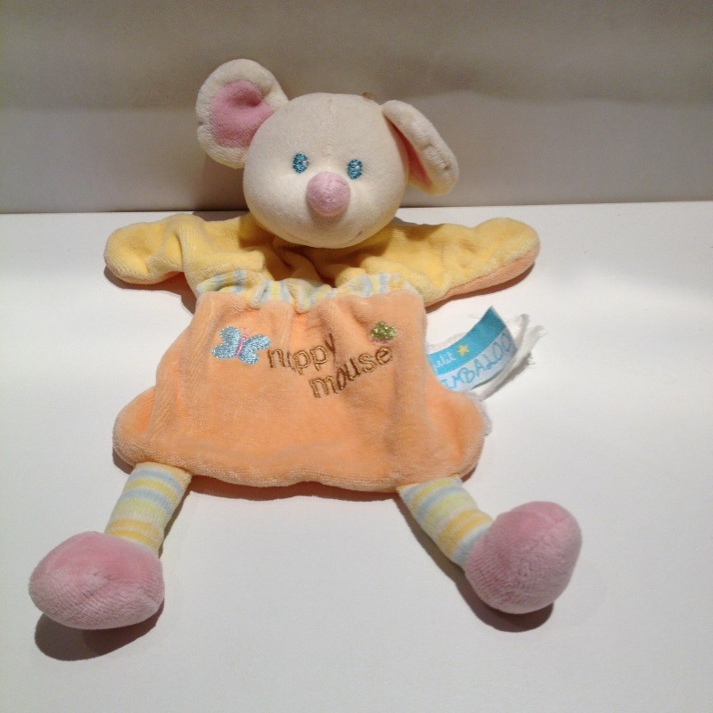 quantité de Doudou Souris Plate Jaune et Orange Happy Mouse Kimbaloo