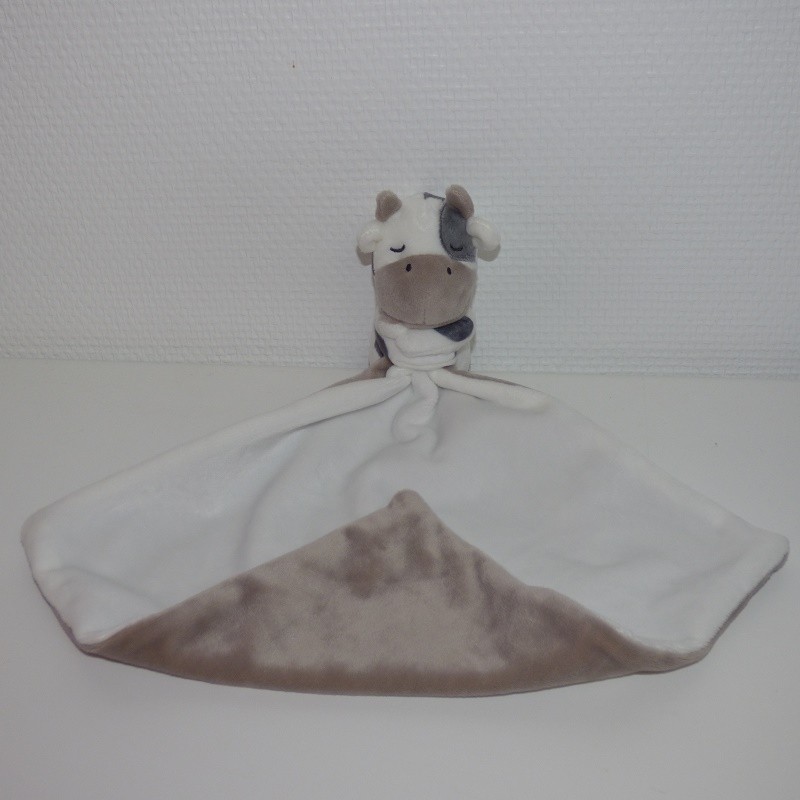 Doudou Vache Blanche Griese et Beige Mouchoir Obaibi Okaidi